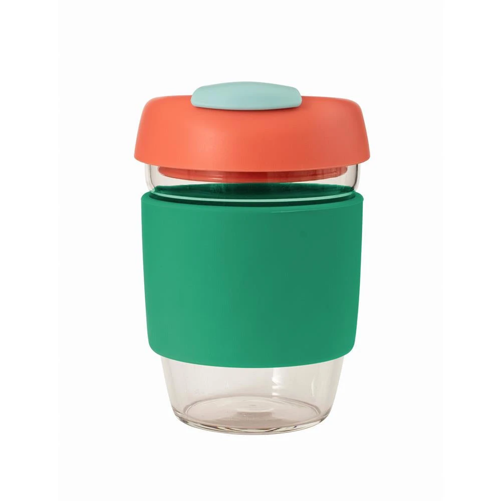 Enjoy your favourite drinks while you’re out and about with the Avanti Glass GoCup 355ml in Green/Coral/Seafoam. This barista-friendly, reusable coffee cup is made from hand-blown borosilicate glass for ultimate temperature retention so you can enjoy your coffee on the go without the fear of it going cold. Designed to be non-toxic and splash-proof, this cup features a silicone grip sleeve so you don’t have to worry about burning your hands while handling it.